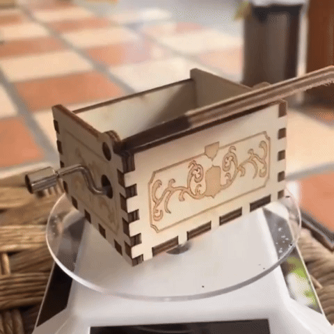 La caja de sonido combina funcionalidad con la belleza de la Artesanía, al girar la manivela fácilmente.